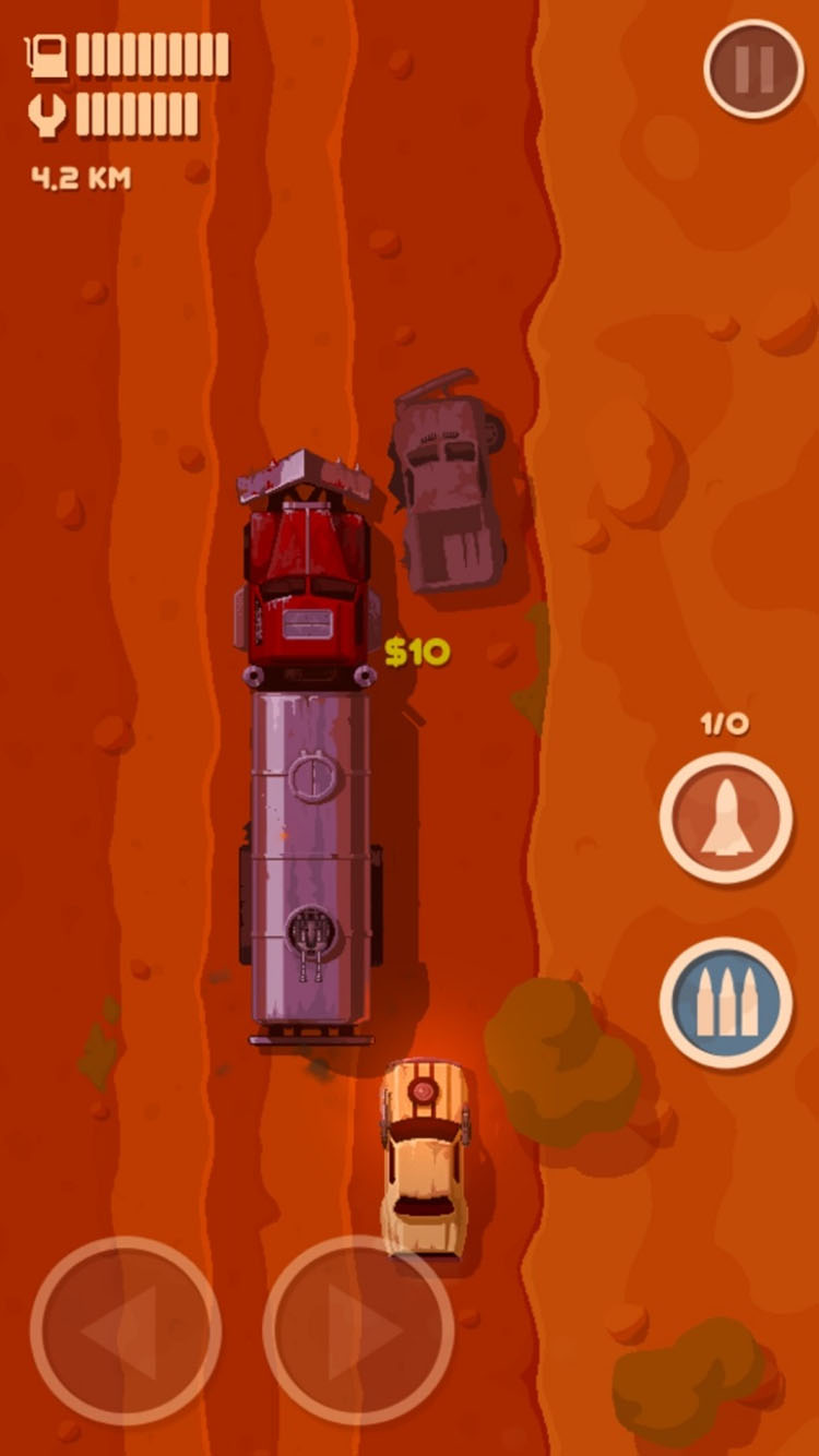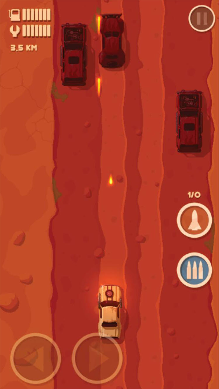 Drive using your finger or arrow keys to avoid cars, trucks, and bullets. Shoot down your enemies with weapons and missiles.