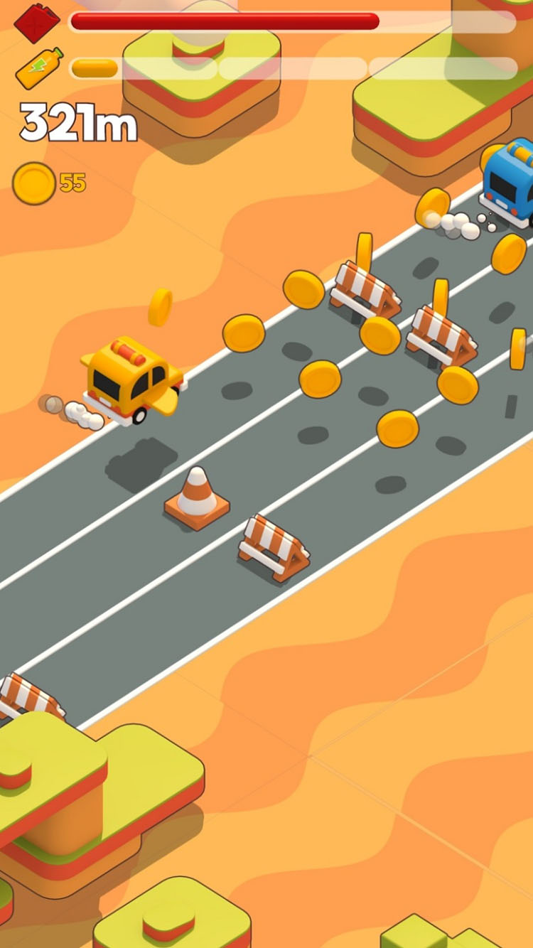 Swipe left or right to change lanes, tap and hold to brake, and swipe up to use nitro!